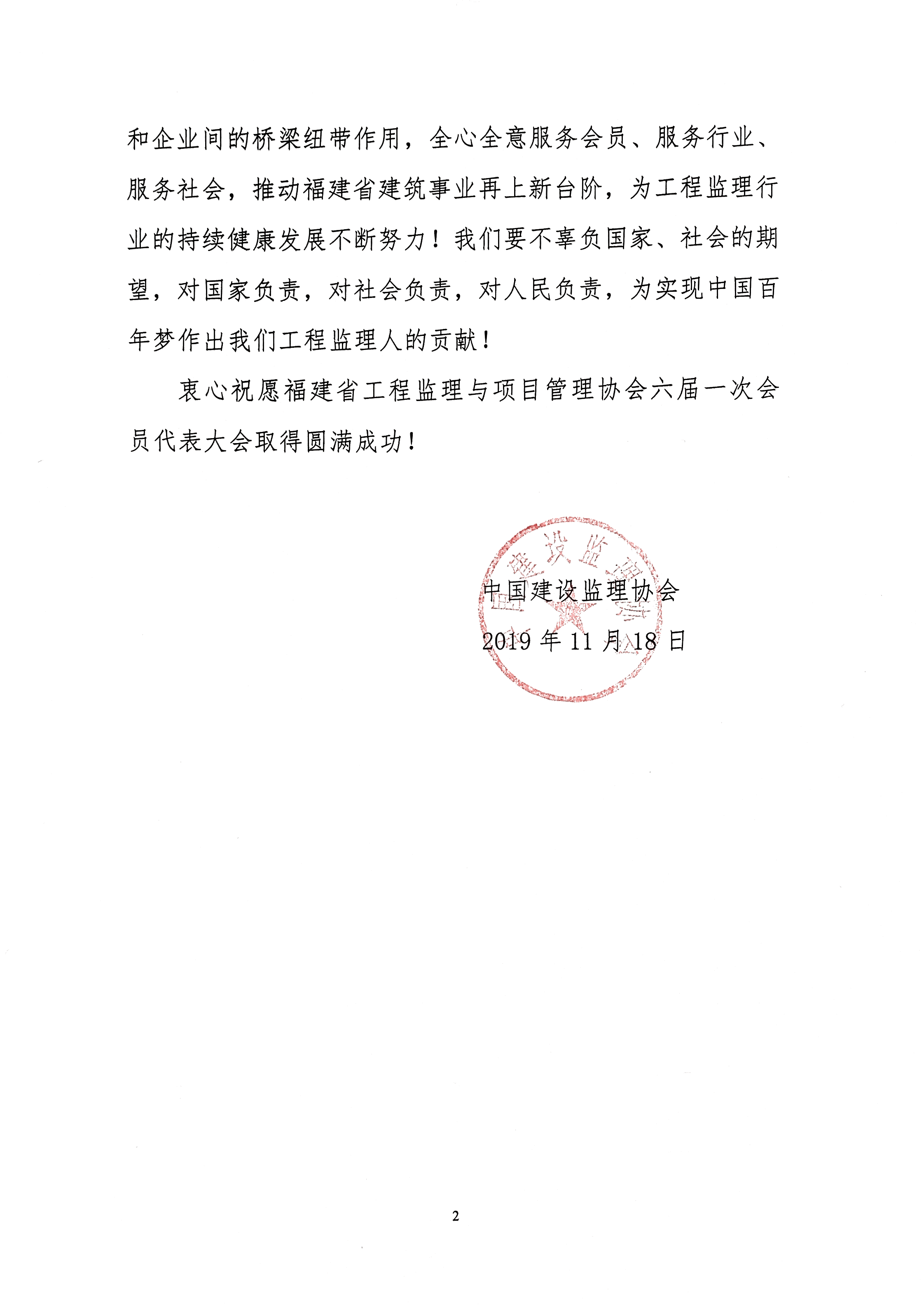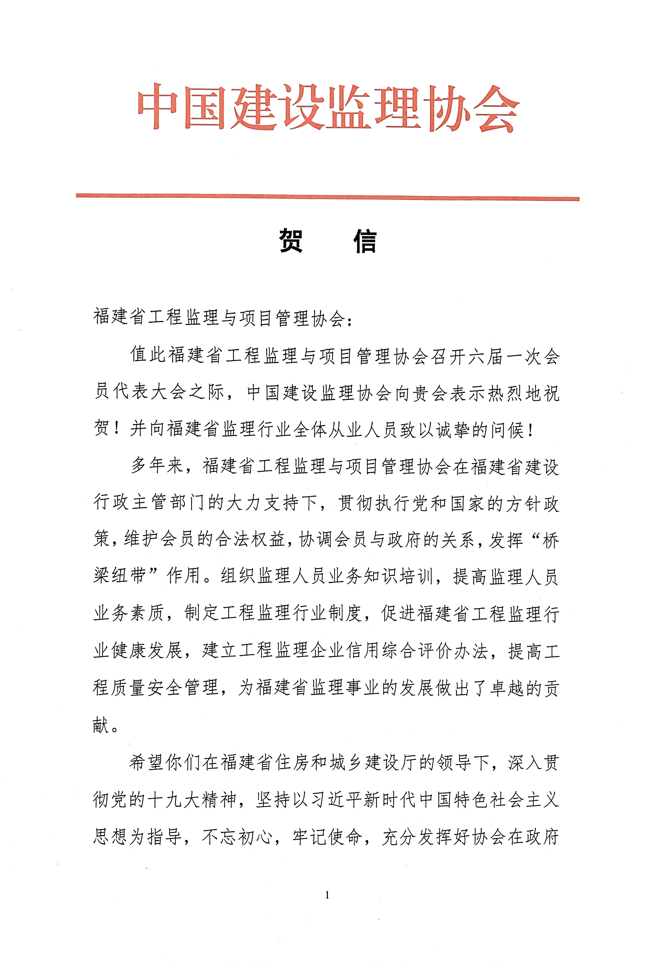 中国建设监理协会贺信