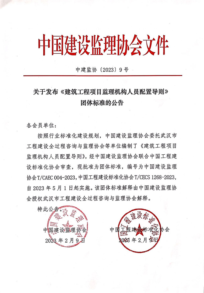 乐动网页版发布《建筑工程项目监理机构人员配置导则》团体标准的公告